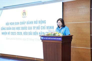 Ngày 27/11/2025, Công đoàn ĐHQG-HCM tổ chức Hội nghị Ban Chấp hành (mở rộng) nhiệm kỳ 2023–2028, kéo dài đến năm 2030, nhằm đánh giá kết quả thực hiện Nghị quyết Đại hội Công đoàn ĐHQG-HCM giai đoạn 2023–2025, xác định phương hướng, nhiệm vụ giai đoạn 2025–2030 và triển khai các quyết định về kéo dài nhiệm kỳ, công nhận Ban Chấp hành các Công đoàn cơ sở thành viên (CĐCSTV).